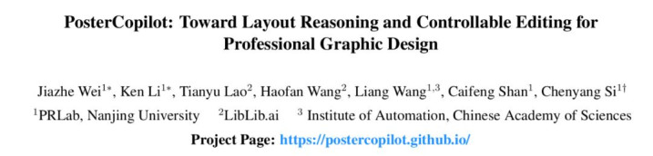 来自南京大学 PRLab 的魏佳哲、李垦,在准聘助理教授司晨阳的指导下,提出专业级海报设计与编辑大模型 PosterCopilot。本研究联合了 LibLib.ai、中国科学院自动化研究所等多家顶尖机构,共同完成了首个解耦布局推理与多轮可控编辑的图形设计框架研发。PosterCopilot 能够实现专业设计级的版式生成、语义一致的多轮编辑,并具备高度可控的创作能力。
